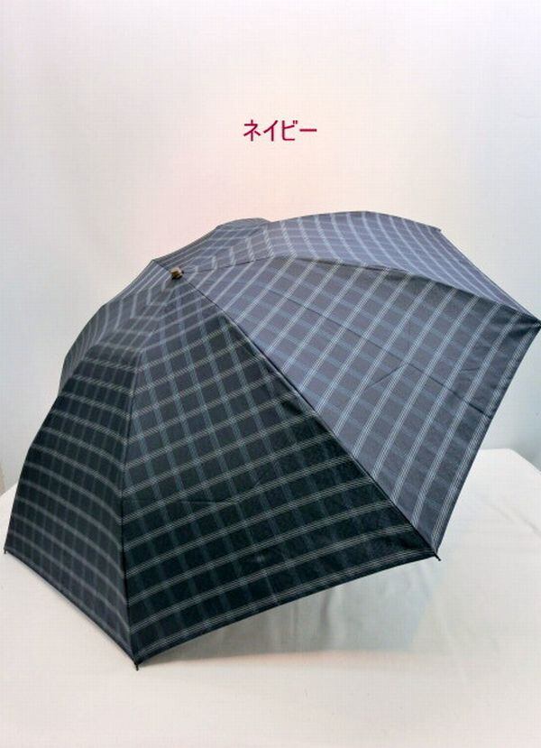 ポリエステル先染め格子生地を使用した紳士用の折り畳み雨傘です。