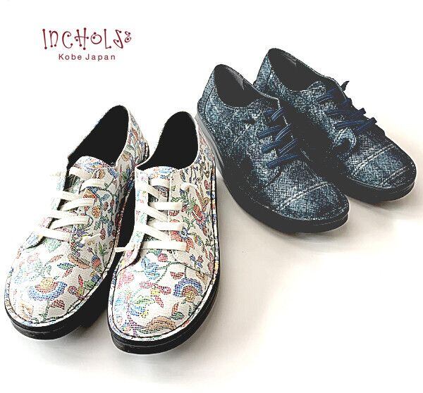 フラワー加工牛革素材のホワイト、チェック加工豚皮素材のネービー 在庫限りのインコルジェ限定品商品!