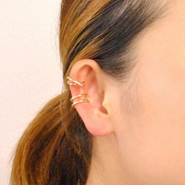 耳の軟骨部分を挟んで着用できるのでノンホール派の方にも♪
