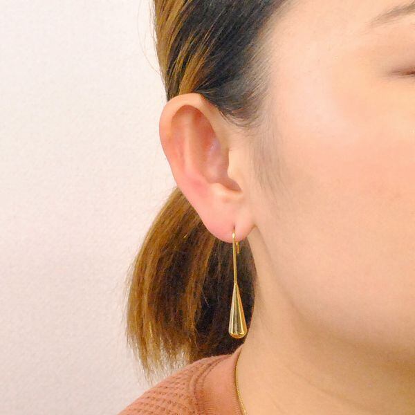 しずくが滴り落ちる瞬間を切り取ったかのようなドロップ型のフックピアスは、