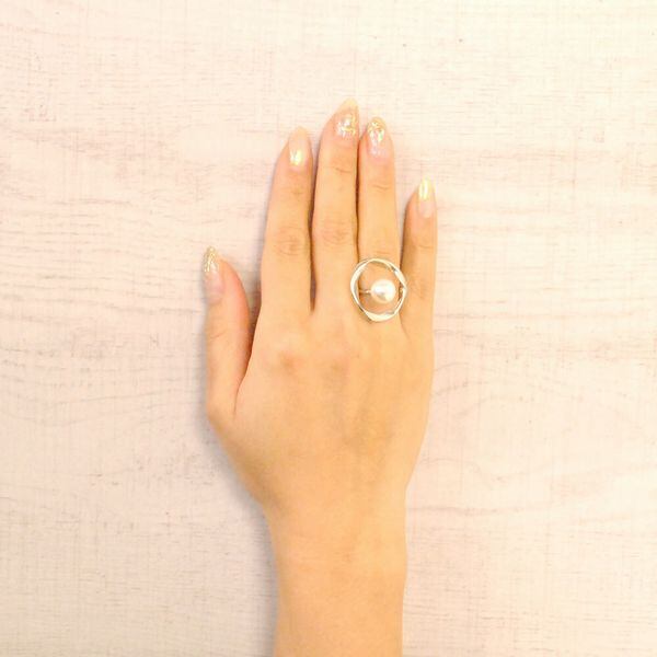 指輪 リング レディースアクセサリー アクセサリー ファッション インパクト大 変形 オープンサークル パールリング パール 大きめメタル 目を惹く 特徴ある 個性的 アクセントに モードな装い オケージョン 手元輝かせたい 【3009-9119976】