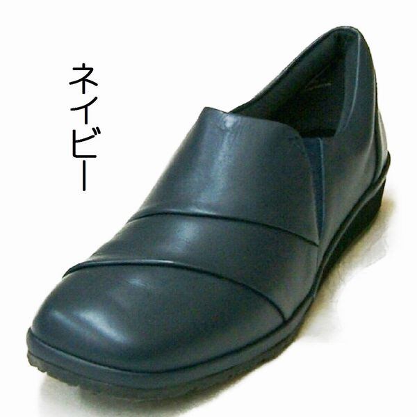 コンフォートシューズ レディースシューズ レディースファッション 靴 スリッポンシューズ ネイビー 4E オールウェーザーソール プラット製法 袋縫い ソフト本革 両サイドゴム 足入れ抜群 コンフォート系 万能スリッポン ローヒールシューズ 【3019-8562333】