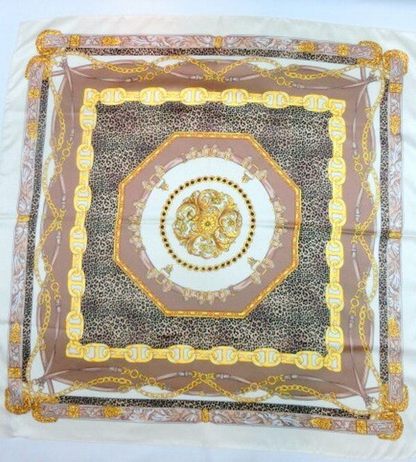 スカーフ ファッション小物 レディースファッション レオパード チェーン柄 スクエア イタリー製 しっとり 柔らか ポリエステル生地 秋冬のオシャレ 首に巻いたり ベルト代わり 腰に巻いたり バッグに付けたり 使い勝手良い 【3001-9677646】