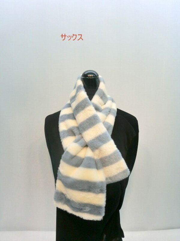 今年ホットなトレンドアイテムのフェイクファー(エコファー)ボーダーマフラーです。