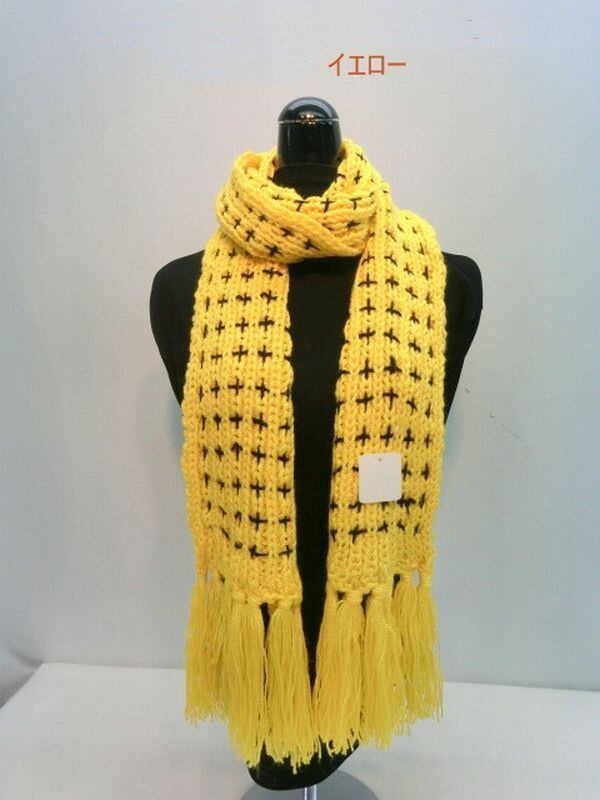 可愛らしくオシャレな柔らかアクリル十字柄ロングマフラーです。