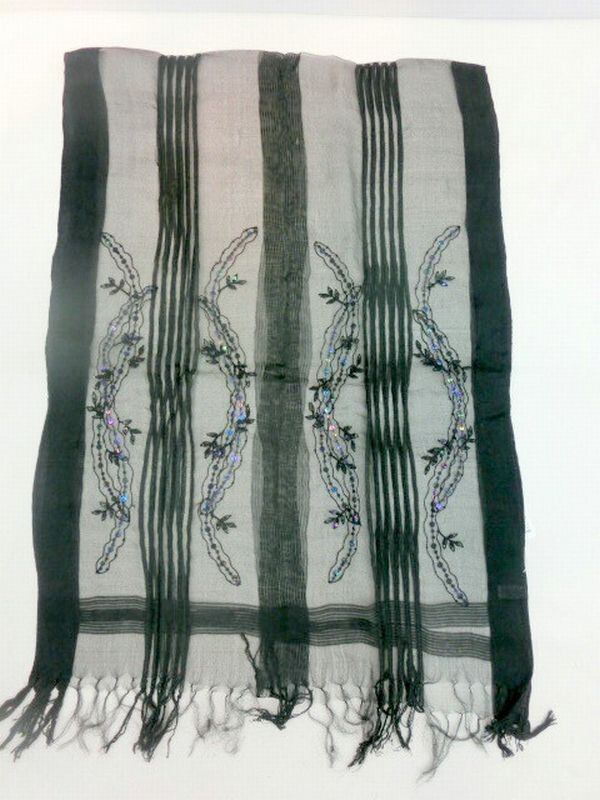 オーガンジー生地にスパンコールを入れたり柄を入れた、高級感のあるオシャレなストールです。