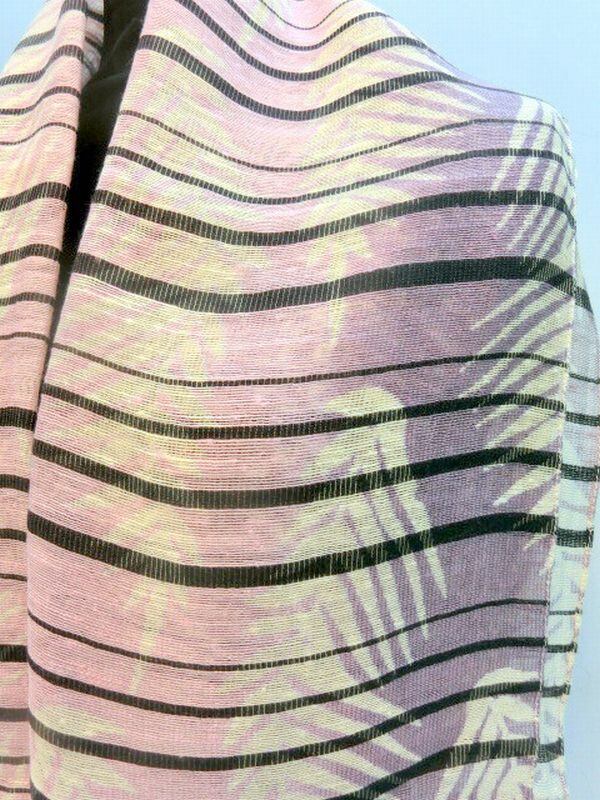 ストール ファッション小物 レディースファッション レーヨン混 ボーダー葉柄 UVケア ふんわり 柔らか サラサラ感 高級感 ボーダー入り葉柄 プリント 秋冬 ファッションのポイント 首周り 【3001-9892860】