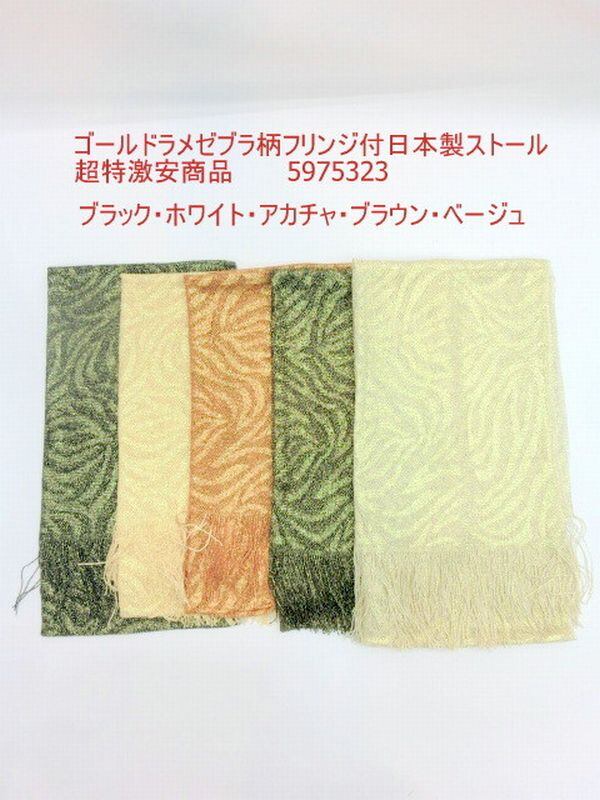 ストール ファッション小物 レディースファッション ゴールドラメ ゼブラ柄 フリンジ付 日本製 高級感 ロング 秋冬のオシャレ 結婚式 パーティ オシャレ 豪華 ラメ入り 【3001-9902401】