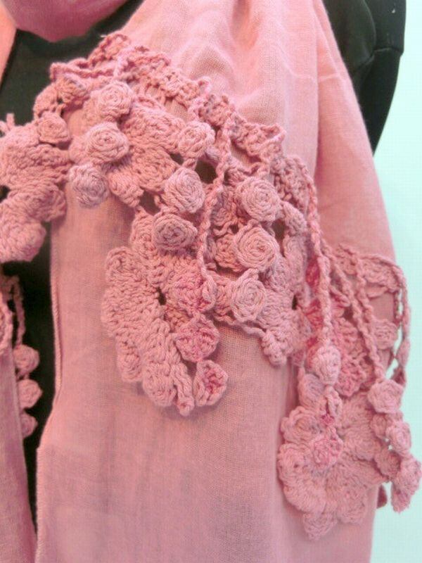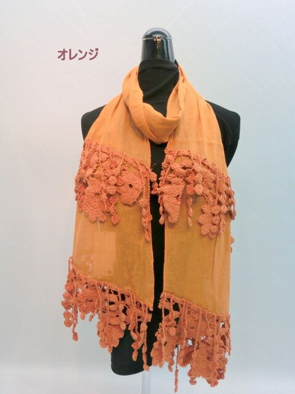 春夏用の肌に優しいコットン100%の生地に、豪華なレースを縫い付けたストールです。