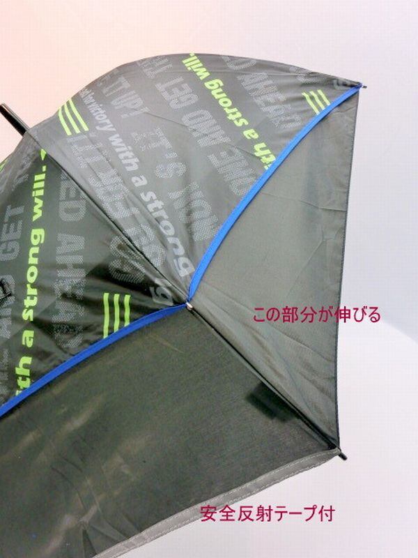 オシャレで可愛いトリプルスター柄のジュニア用手開き雨傘です。傘の骨・生地がスライドして、背中の荷物が濡れにくい、機能的な商品です。