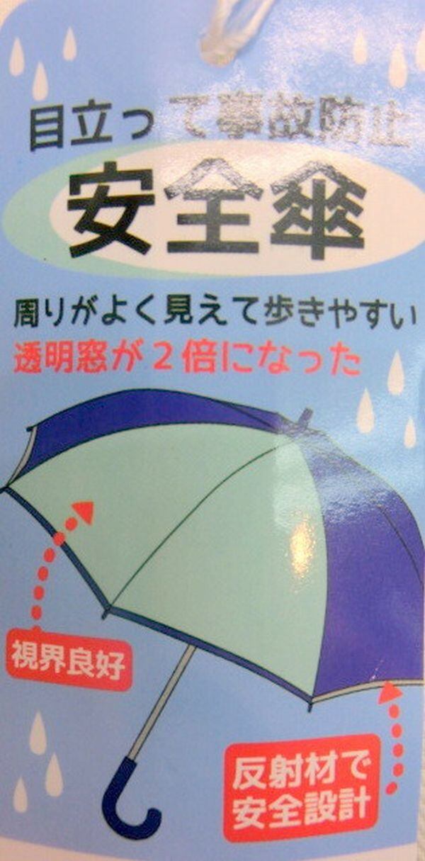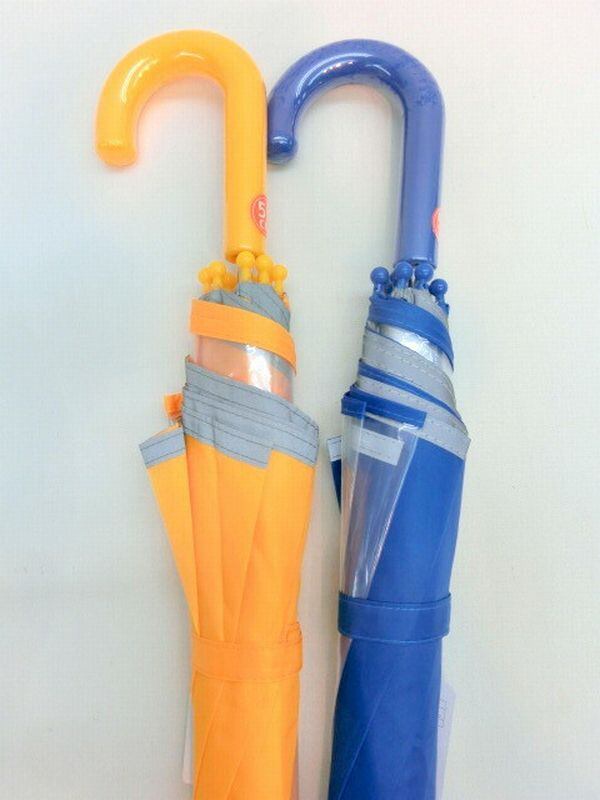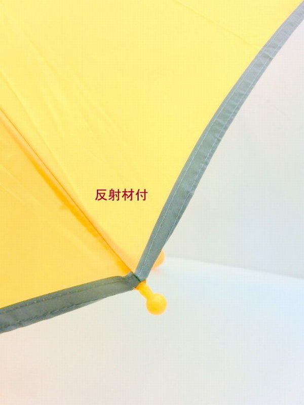 透明部分が2駒になり、さらに視界良好になりました。裾には反射材付なので夜でも安全な通学用ジャンプ黄色雨傘です。