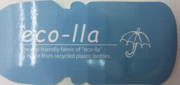廃棄ペットボトルなどのリサイクル素材から再生粒を作り、その粒から糸を作り出し、紡いだ糸からリサイクル生地を作ります。廃棄されたものから新たな傘が生まれます。