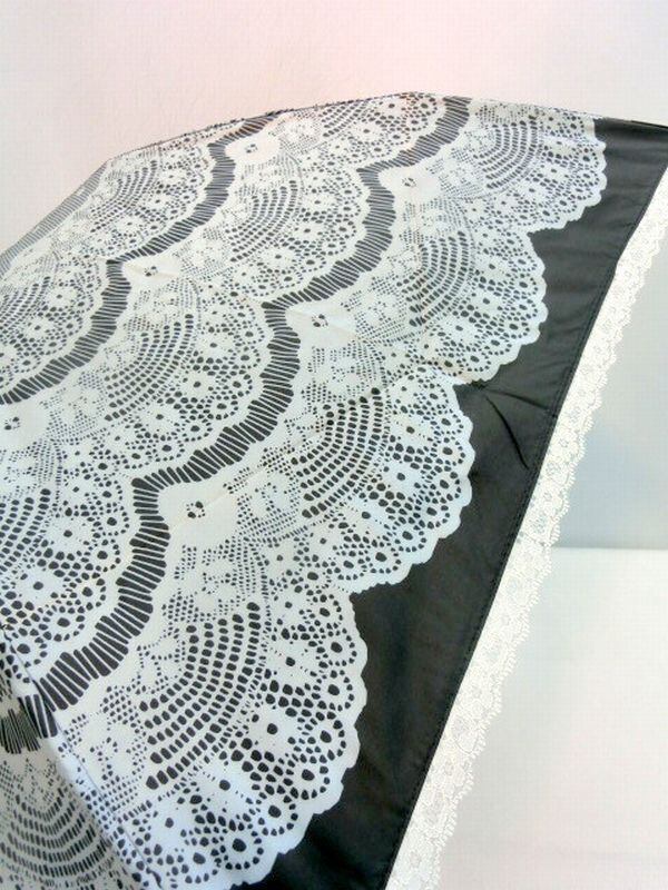 UVカット99%以上のカラーコーティング加工、軽量丸ミニタイプの晴雨兼用折畳傘です。オシャレなレース調プリントです。