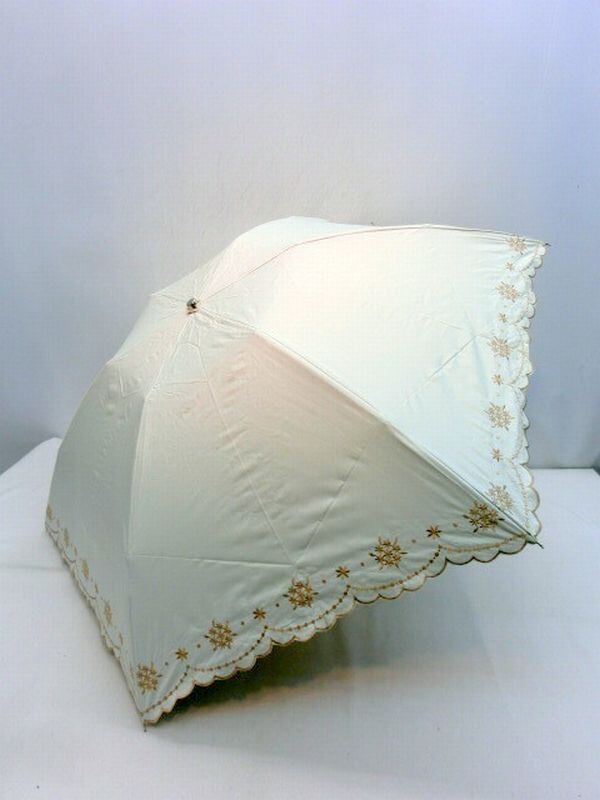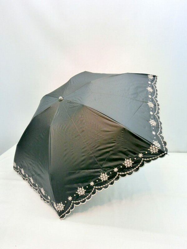 オシャレで高級感あるリトルブーケ柄の裾刺繍ミニ晴雨兼用傘です。