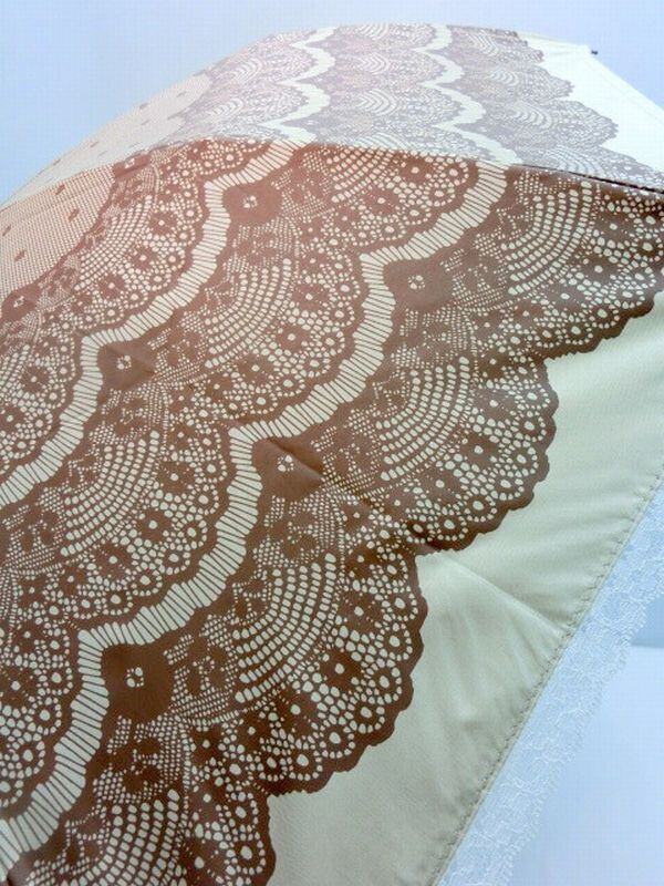 UVカット99%以上のカラーコーティング加工、畳みやすい2段式の晴雨兼用折畳傘です。高級感のあるオシャレなレース調プリントです。