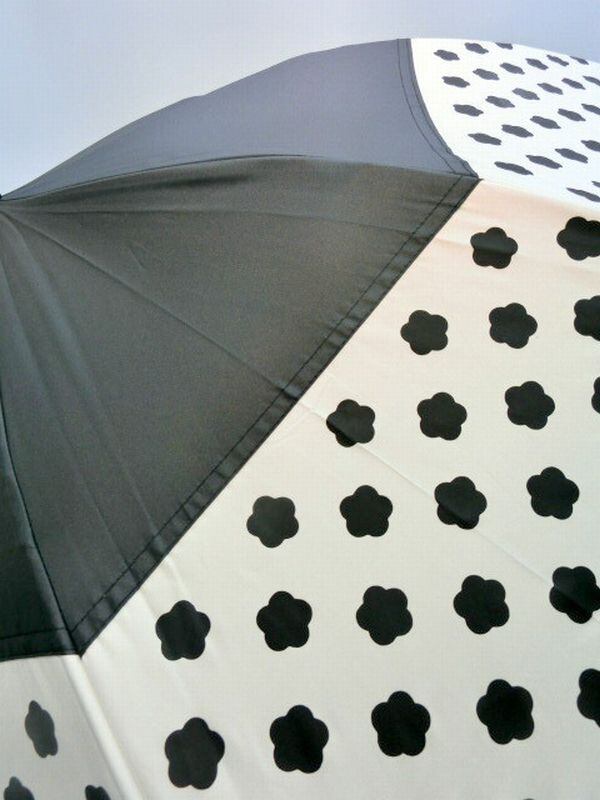 オシャレで高級感のある切り継ぎ花ドットプリント晴雨兼用軽量ジャンプ傘です。