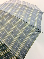 高級感のあるポリエステル先染め格子生地使用の紳士用ジャンプ雨傘です。中棒太さ12mm・軽くて強いグラスファイバー骨使用。風に強い耐風Z型ダボ使用で風に煽られても折れにくい丈夫設計◎手に優しく高級化のある木製手元、傘の先端を短めにすることで全長が短く持ちやすい雨傘です。