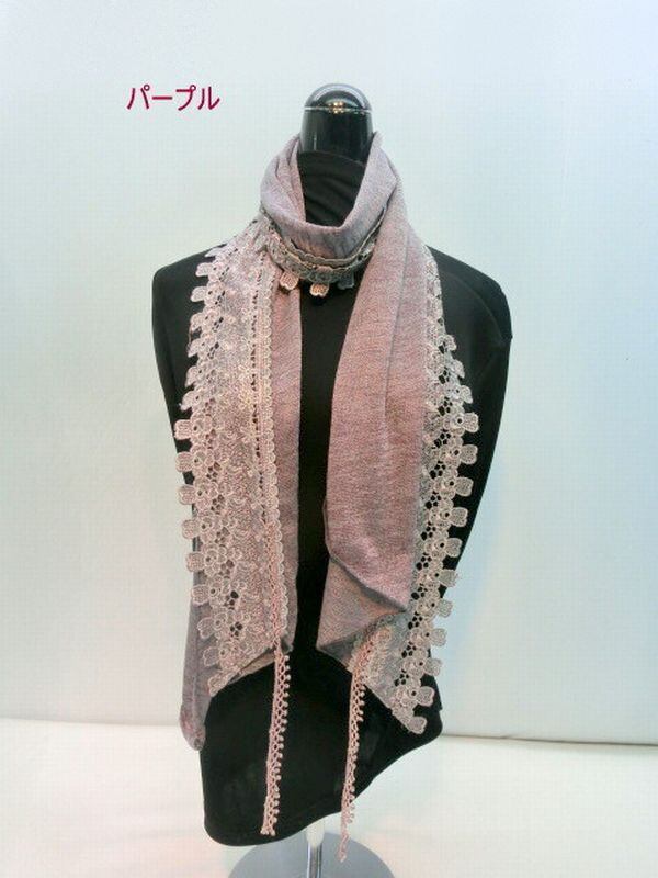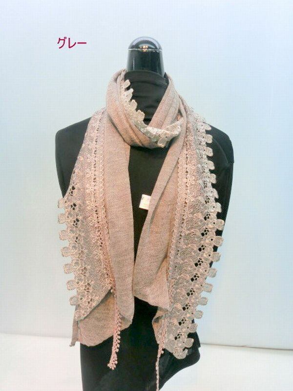 ストール ファッション小物 レディースファッション ポリエステル生地 刺繍糸 レース付き ポリエステル100% ニット生地 コットン レース 異素材組み合わせ オシャレ 剣先型 秋冬のオシャレ 【3001-9887701】