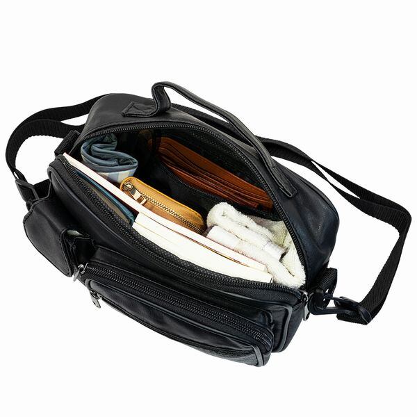 ショルダーバッグ メンズバッグ メンズファッション 本革 やわらかレザー シンプルブラック 革たっぷり使用 優しい手触り 軽い持ち運び シニア層 天然皮革 【3006-8517732】