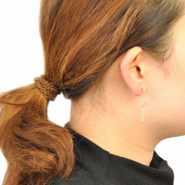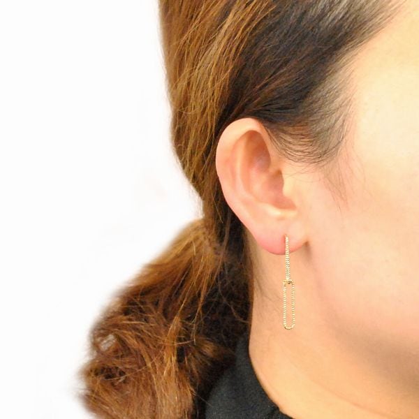 トレンドデザインのスリムスクエアチェーンメタルピアス☆