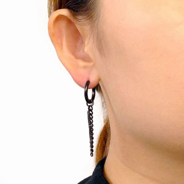 動くたびチェーンとバーがキラキラ揺れる、クールな印象のステンレスピアス☆彡