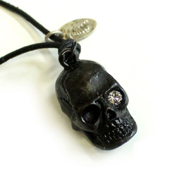 ヴィンテージ加工を施した牛革丸紐ネックに、ゴロンとしたリアルなドクロをぶら下げました。