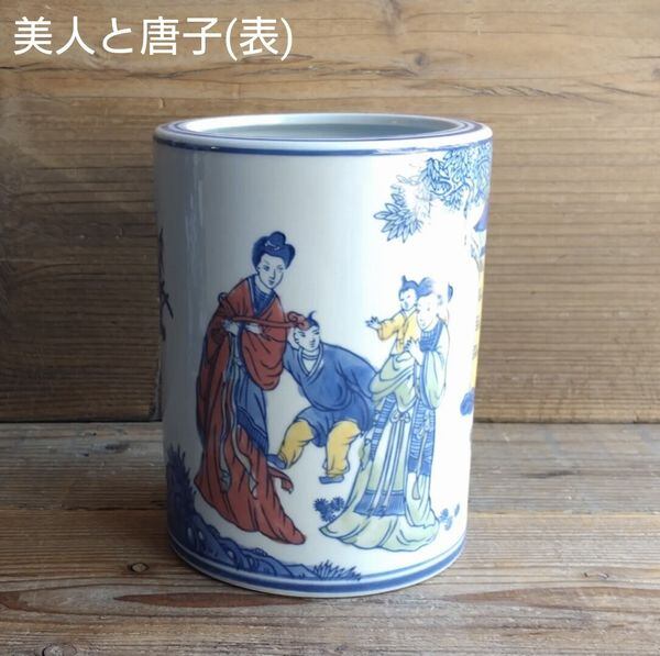 染付と色絵の筒型手あぶり
