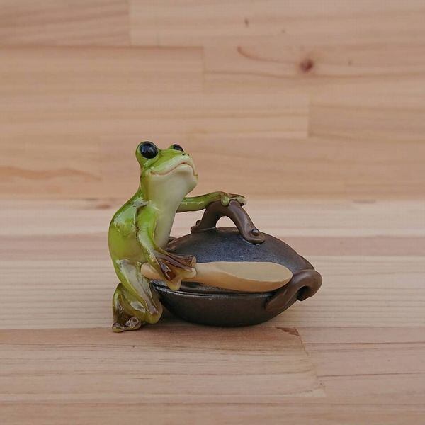 オブジェ 置き物 インテリア雑貨 家具 インテリア カエル コックさん 蛙 オーナメント 料理人ならぬ料理蛙 中華鍋 珍しい構図 オススメ 縁起物 いろんな物が帰ってくる インテリアの雰囲気づくり 【3024-7400892】