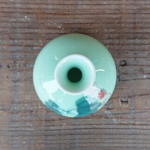 花瓶 花器 フラワースタンド インテリア雑貨 家具 インテリア 龍泉 青磁 一輪挿し 平花瓶 工芸品 淡いグリーン 赤い蓮の花 映える ミニ 陶磁器 手描き 一つとして同じものなし 雰囲気 主張し過ぎず さりげない雰囲気作り オススメ 蓮の花 清らかな心 蓮根 お正月や慶事 君子の花 縁起物 縁起の良い 贈り物として 【3024-7410323】
