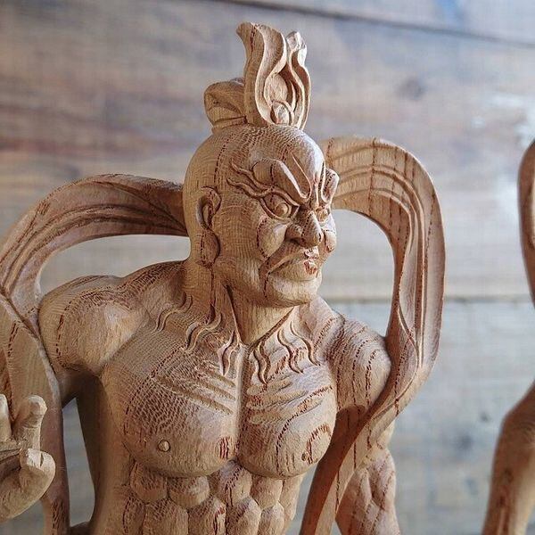 オブジェ 置き物 インテリア雑貨 家具 インテリア ケヤキ材 仁王 20cm 工芸品 木彫品 執金剛神 阿吽 金剛力士 像 阿形 吽形 金剛力士像 手彫り 一つ一つ表情が異なる 一つとして同じものなし 独特の木目 ノミ仕上げ 表情豊かに彫り上げ 【3024-7429332】