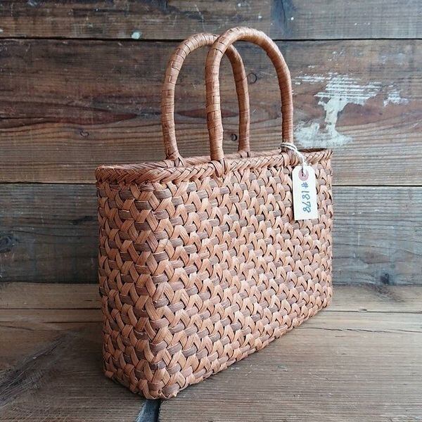 かごバッグ レディースバッグ レディースファッション 山葡萄 籠バッグ 内布付き #1878 麻葉編み 樹皮編みあげ 非常に丈夫 使い込むほど味と風合い増す 経年変化を楽しむ 中型 マチ幅細め 【3024-7431452】