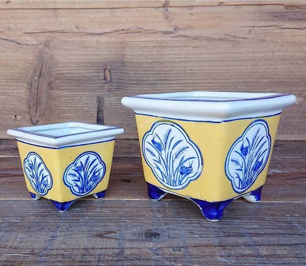 鉢(一般) 鉢 プランター ガーデニング 園芸用品 花 正方植木鉢 大小2点セット 黄色 コントラストが映える 陶器 植木鉢 陶磁器 和テイスト 庭 【3024-7618541】