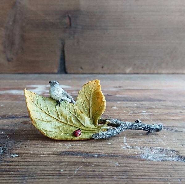 オブジェ 置き物 インテリア雑貨 家具 インテリア 小鳥 天道虫 on the leaf オーナメント 置物 合成樹脂 【3024-7970689】