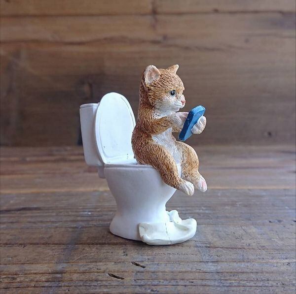オブジェ 置き物 インテリア雑貨 家具 インテリア ネコ トイレでスマホ 珍しいデザイン 猫 オーナメント インテリアの雰囲気づくり オススメ 【3024-8487155】