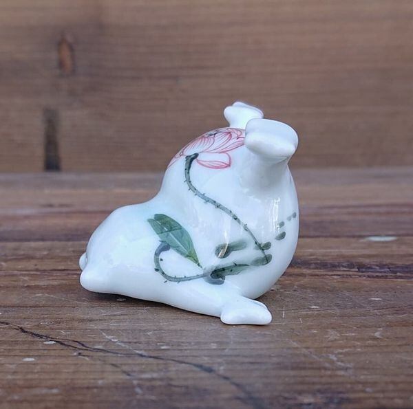 実は縁起の良い【蓮の花】と【蓮根】の絵付けが手描きで施された、縁起物としても人気の蛙の『福を六蛙(迎える)』シリーズの『ひっくり蛙』贈り物としてもオススメです