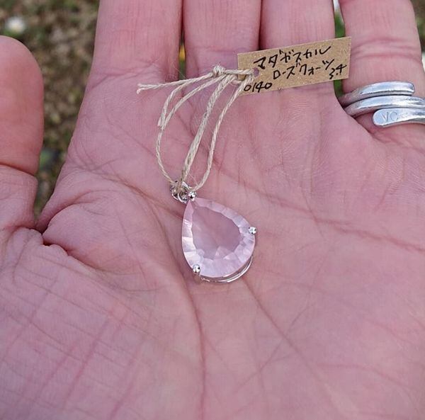 特に透明度の高い『マダガスカルローズクォーツ』にカット加工を施したペンダントです