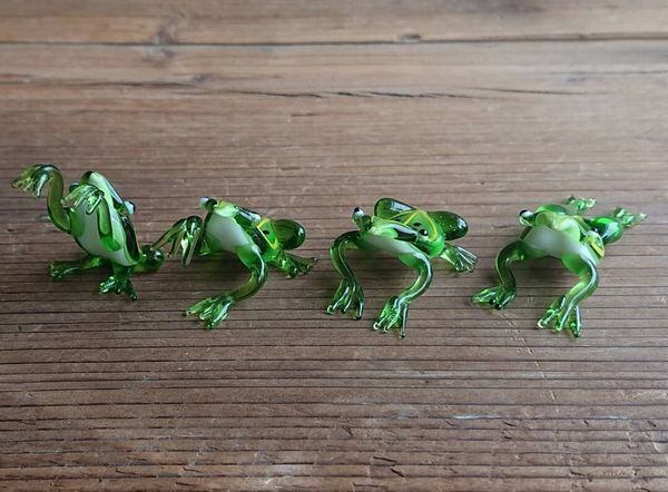 オブジェ 置き物 インテリア雑貨 家具 インテリア 緑が映えるカエルたち 4匹セット ガラス 置物 かえる カエル 蛙 縁起物 【3024-9453692】