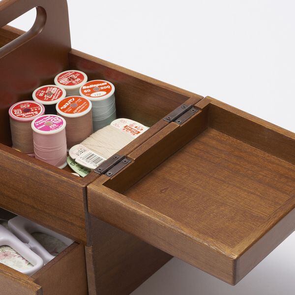 ご使用時には蓋も手芸材料の小物置きになり使い勝手がよく、手芸道具を整理して収納できます。