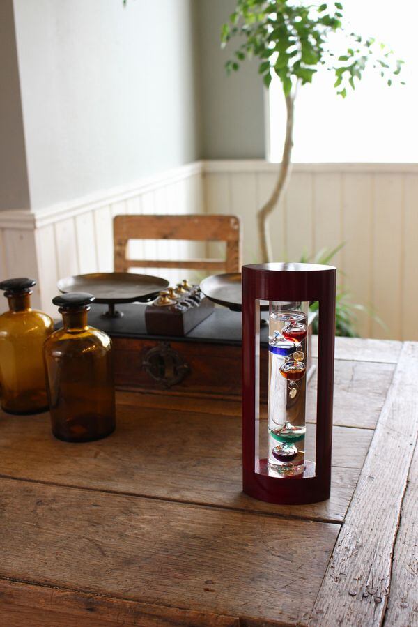 オブジェ 置き物 インテリア雑貨 家具 インテリア FunScience ガリレオ ガラスフロート温度計 物理学者 ガリレイ 液体の比重 気温によって変化 温度計 気温によって上下する ガラス球体 気温 プレート読み 艶のある木枠 モダン 華やかな印象 サーモメーター 【3027-3454006】