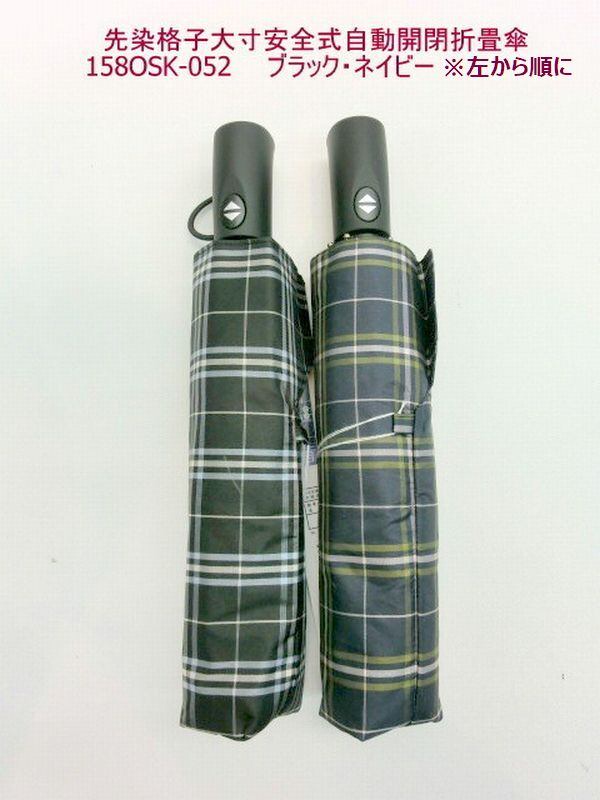 高級感のあるポリエステル先染め格子生地使用の紳士用折り畳みジャンプ雨傘です。収納時にシャフトが逆戻りしない安全ストッパー式安全式自動開閉折畳傘です。