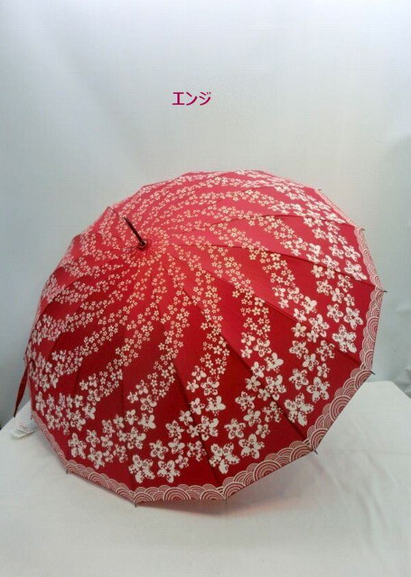 雨傘 傘 ファッション小物 レディースファッション 長傘 婦人 16本骨 北川桜吹雪柄 手開雨傘 高級感ある 和風 手開き傘 オシャレ 斬新なデザイン 【3001-10384232】