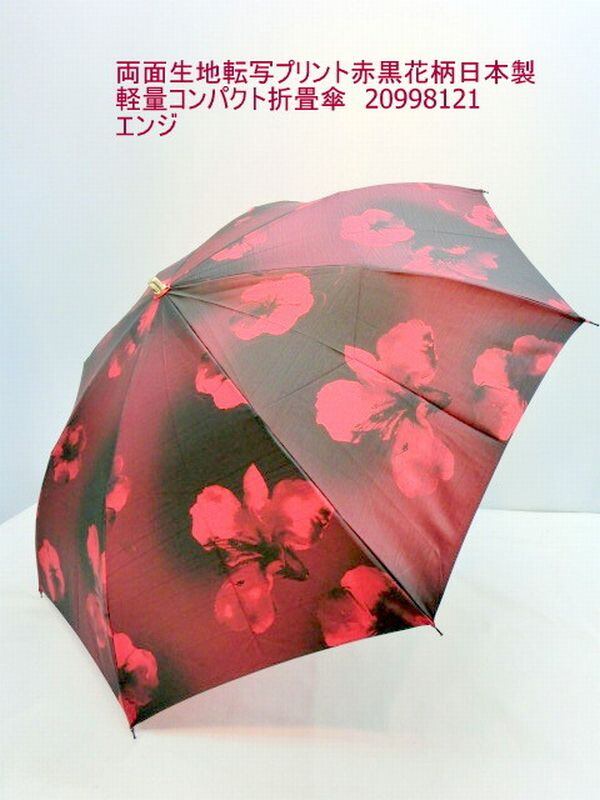 雨傘 傘 ファッション小物 レディースファッション 折畳傘 婦人 両面生地 転写プリント 赤黒花柄 日本製 軽量 コンパクト 折畳 表面花柄 裏面無地 両面ポリエステル生地 軽くて畳みやすい 拡げやすい 高級感ある オシャレ 鮮やか 真っ赤な花柄 折り畳み 【3001-10393434】
