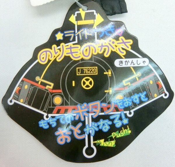 キュートな乗り物傘です。人気の機関車柄♪手元のボタンを押すと機関車の音が鳴り・傘の先端がピカピカと光ります。