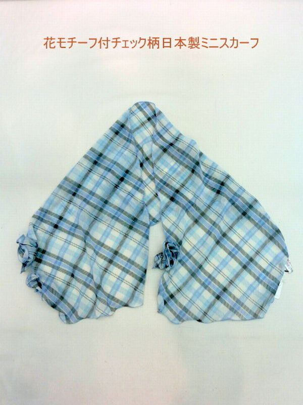 スカーフ ファッション小物 レディースファッション 花モチーフ付 チェック柄 日本製 ミニスカーフ フチメロウ仕上げ 可愛い 花モチーフ 可愛いらしい ミニ 秋冬のオシャレ 【3001-10730157】