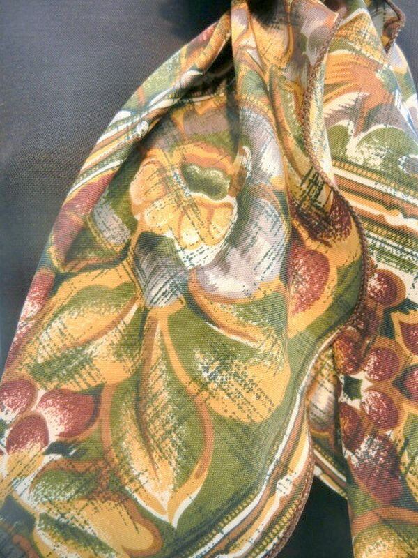 絣風花柄プリントポリエステルロングスカーフです。ルイス始末をしてフリル感を出しています。