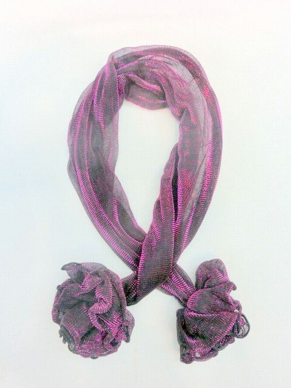 針金入の形状記憶スカーフです。高級感のある豪華なラメ入り生地使用です。様々な形が自在にでき、秋冬のオシャレが簡単に楽しめるスカーフです。