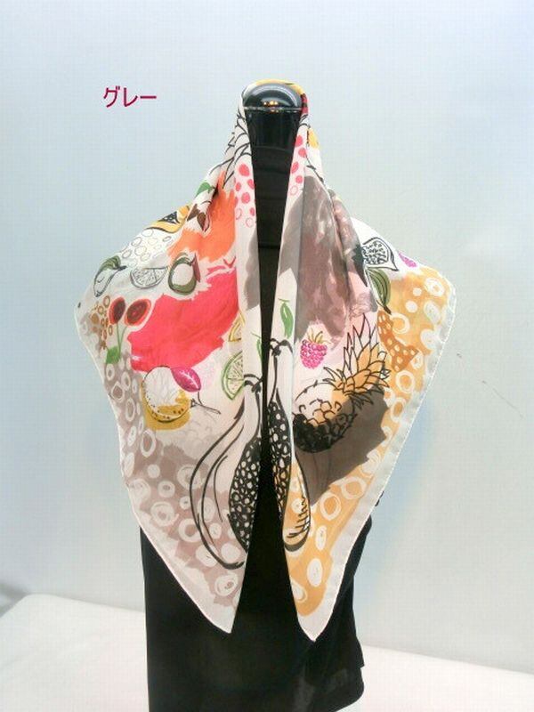 スカーフ ファッション小物 レディースファッション ポップフルーツスカーフ ふんわり柔らか ポリエステル100% 中判 斬新 お洒落 イタリー製 ポップフルーツ柄 秋冬のオシャレ 首周りのオシャレ 【3001-10737029】