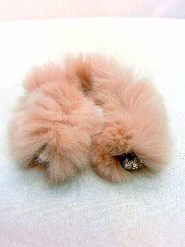 ふわふわレッキスファーのチェーンブレスレットです。ゴールドのチェーンブレスレットにファーが巻きつけてあります。