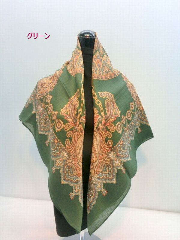 スカーフ ファッション小物 レディースファッション 日本製 ウール100% ペイズリー柄 プリント 大判スカーフ 柔らか しっとりした肌さわり 格子 ペイズリー 大判 肩からも巻ける ウール 温かさ 秋冬のオシャレ 【3001-10815266】