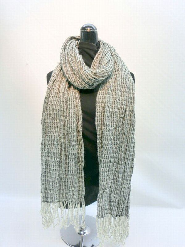 アクリル生地にシワ加工してミニジオメトリック柄のオシャレなストールです。ビッグサイズなのでコレ1枚でコート代わりにもなります。